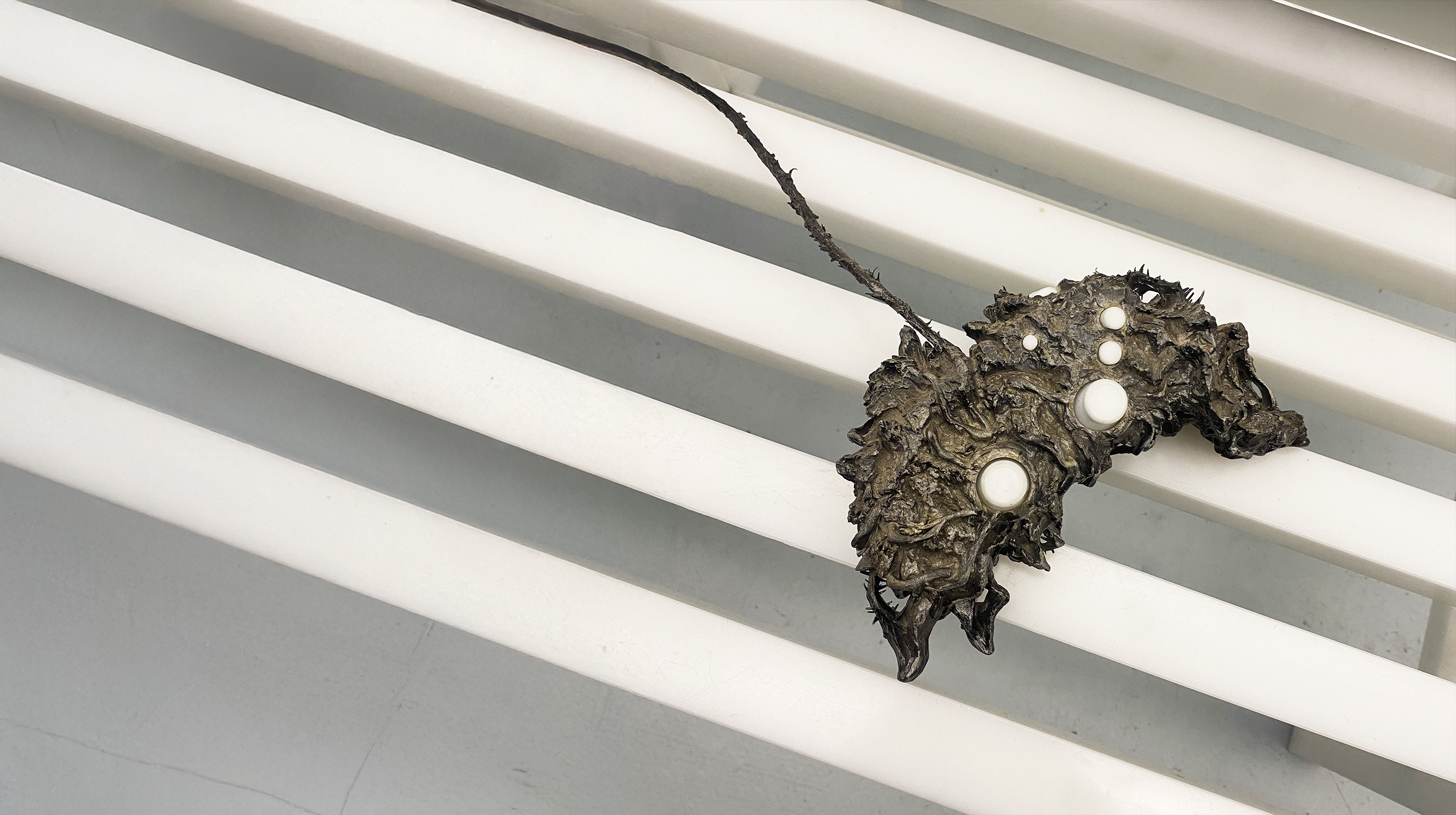 A game created by Distraction Collective, combining video game design, 3D-printed resin, computer-based systems, video projection and sound, in a variable-dimension installation.